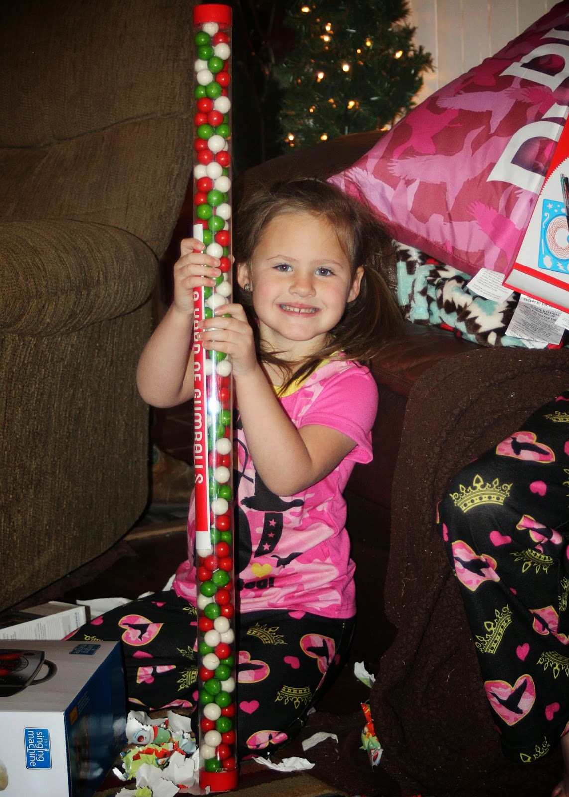 Avery got a karaoke machine, a new bike, her deer hat, a nerf gun, an art kit, a game, some movies, a new dance leotard, some money, and lots of chapstick.